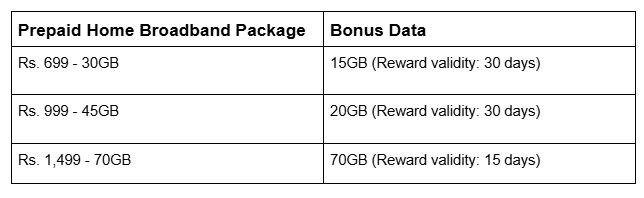 - Customers who Reload and activate Dialog Prepaid Home Broadband Rs. 699, Rs. 999 & Rs. 1,499 Packages via the Genie app will receive bonus data according to the following table.